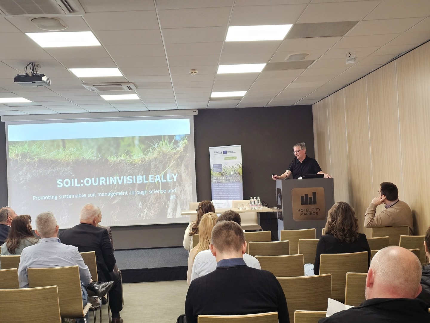 12.marca je bil projekt SOIL:OIA predstavljen na zaključni konferenci Carbon Farming v Mariboru, ki je združila strokovnjake s področja trajnostnega upravljanja tal in ogljičnega kmetovanja. Na dogodku je doc. dr. Primož Simončič, vodja projekta SOIL:OIA, izpostavil ključno vlogo tal pri blaženju podnebnih sprememb in njihov pomen kot temeljnega elementa gozdnih ekosistemov. Poudaril je, da zdrava tla omogočajo vezavo ogljika, ohranjajo biotsko raznovrstnost ter prispevajo k stabilnosti gozdov.